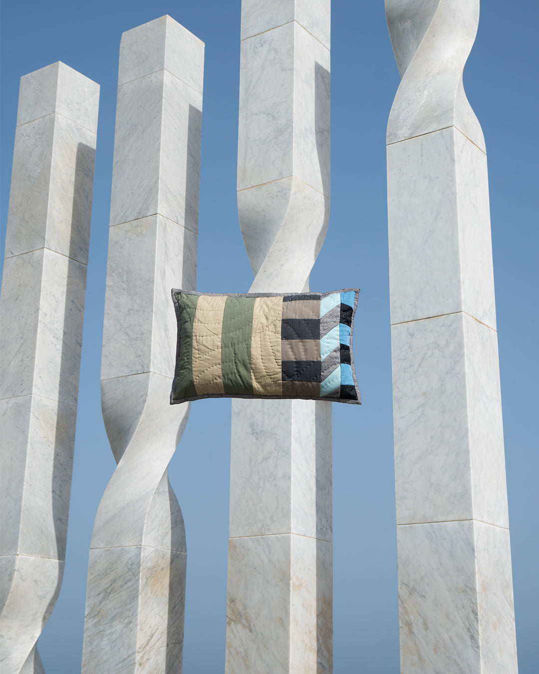 For Round 24 of the A.P.C. quilts, Jessica Ogden was inspired by the paintings of artist Sean Scully. "After the complex concept of Series 23, his minimalist works spoke to me, with their sort of subtle, rhythmic breathing and unexpected colour choices," she says. The result is a series of quilts with a graphic design where colour upsets the regularity of simple geometric shapes.