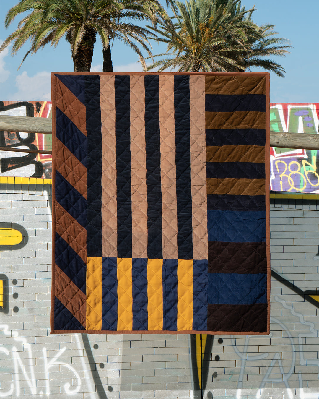 The Quilts project launched in 2010 thanks to Jessica Ogden and Jean Touitou's shared interest in patchwork, and a desire to use the stock of A.P.C. fabrics accumulated over the seasons. These unique quilts in a variety of patterns, sizes and colours reflect the history of the brand and its interactions with other designers.