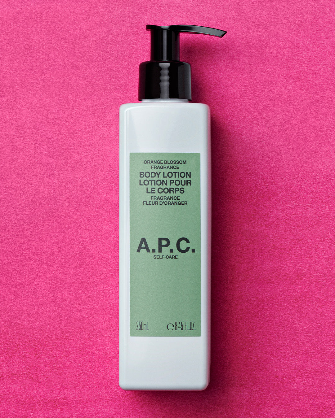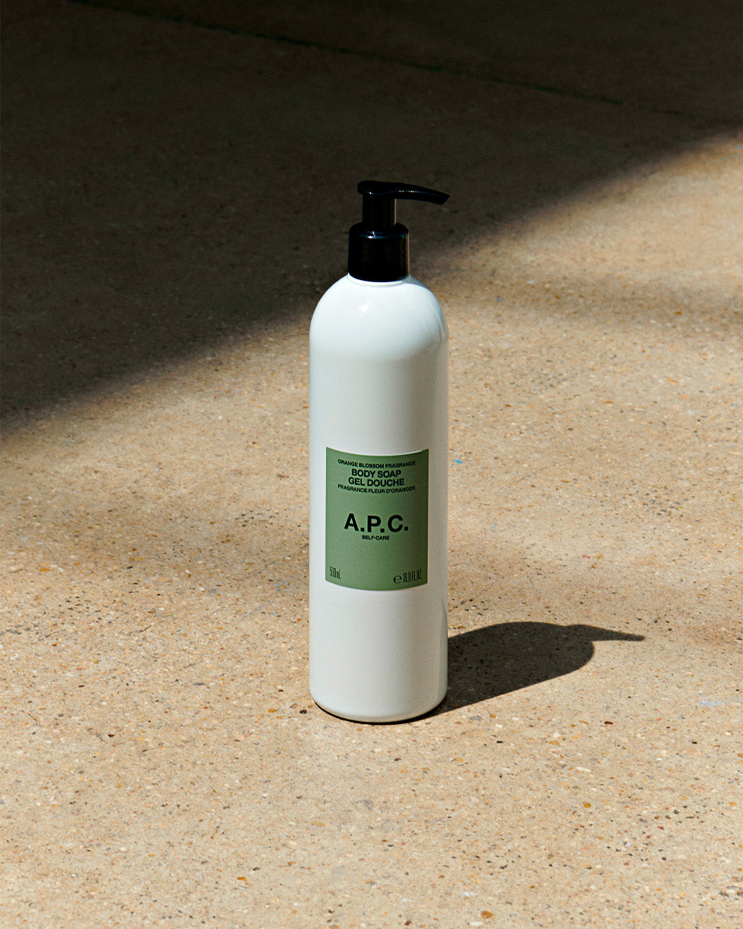 Valued in perfumery and cooking since ancient times, orange blossom is at the heart of the first A.P.C. bodycare line made in France, with six understated products containing ingredients that are at least 98% of natural origin and mostly certified as organic. The de-stressing benefits of neroli essence produced from the bitter orange flower, including for the skin, made it one of the substances supplied by 18th-century apothecaries.